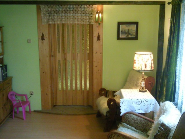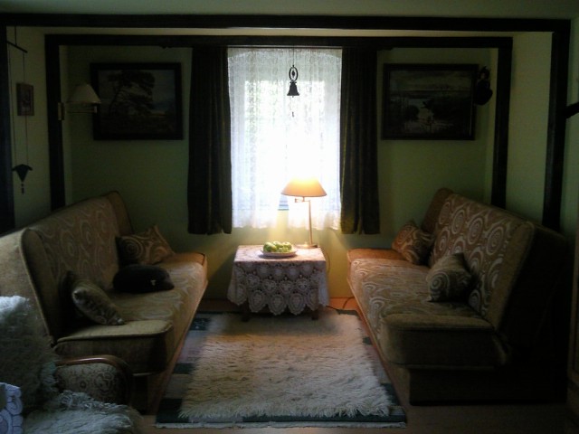 W domu znajduje się łazienka z prysznicem, kuchnia, jadalnia, dwa pokoje, kominek, lodówka, telewizor, radio, itp..
