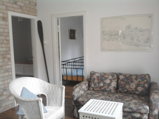 Jeśli planujesz urlop we dwoje ( + jeden ) polecam przytulny apartament na pięterku. W nim aneks kuchenny, łazienka z wanną oraz zaciszne miejsce na podwórzu.